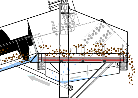 由螺旋推向上部排出,來進行機械分級的一種分級設(shè)備,能把磨機內(nèi)磨出的料粉級于過濾,然后把粗料利用螺旋片旋片旋入磨機進料口,把過濾出的細(xì)料從溢流管子排出。